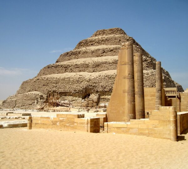 • The pyramids of King Zoser in Sakkara: it was built by Imhotep and it is the only one of its kind as it was the first real pyramid to be constructed in ancient Egypt (predates those at Giza) that’s why it is the most ancient surviving monument and the oldest stone building in history. The pyramid consists of six layers of Mastaba tombs positioned above each other’s which represent a staircase to heaven as it goes upwards in six steps on four sides to its top.