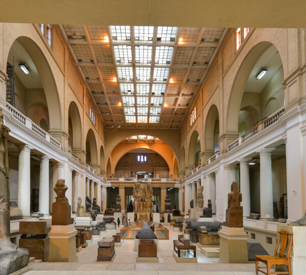 - Move to visit the Museum of Egyptian Antiquities: The Museum of Egyptian Antiquities, known commonly as the Egyptian Museum or the Cairo Museum. It is home to an extensive collection of ancient Egyptian antiquities. It has 120,000 items, with a representative amount on display and the remainder in storerooms. Built in 1901 by the Italian construction company, Garozzo-Zaffarani, to a design by the French architect Marcel Dourgnon, the edifice is one of the largest museums in the region, you can visit The Royal mummy’s room (additional cost).